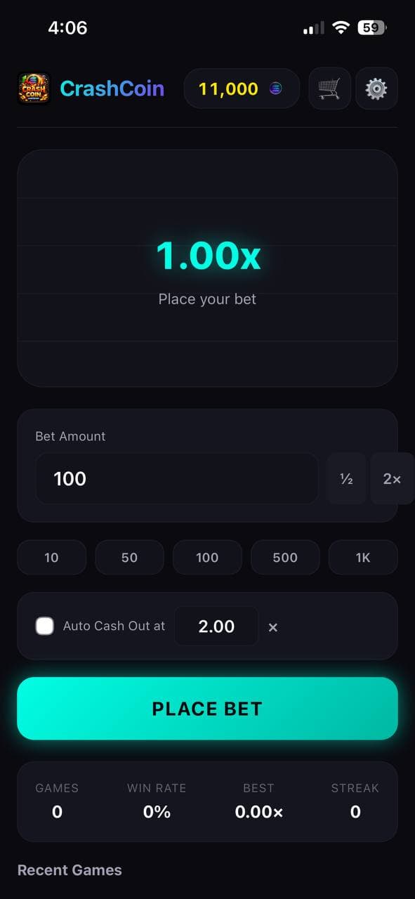 A thrilling crypto crash trading simulator where you bet virtual coins, watch the multiplier rocket, and cash out before it crashes — no real money, pure adrenaline.